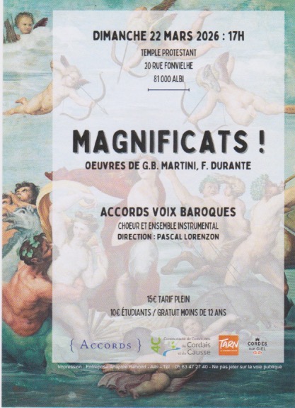 Choeur et ensemble instrumental ; direction Pascal Lorenzon ; 15 € – Etudiant : 10 € – enfant  de – 12 ans : gratuit