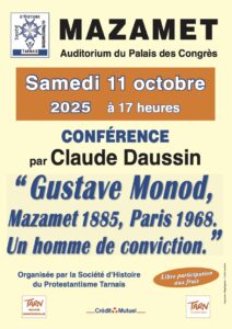 MAZAMET, auditorium du palais des congrès - samedi 11 octobre 17h - conférence proposée par la Société Historique du Protestantisme Tarnais